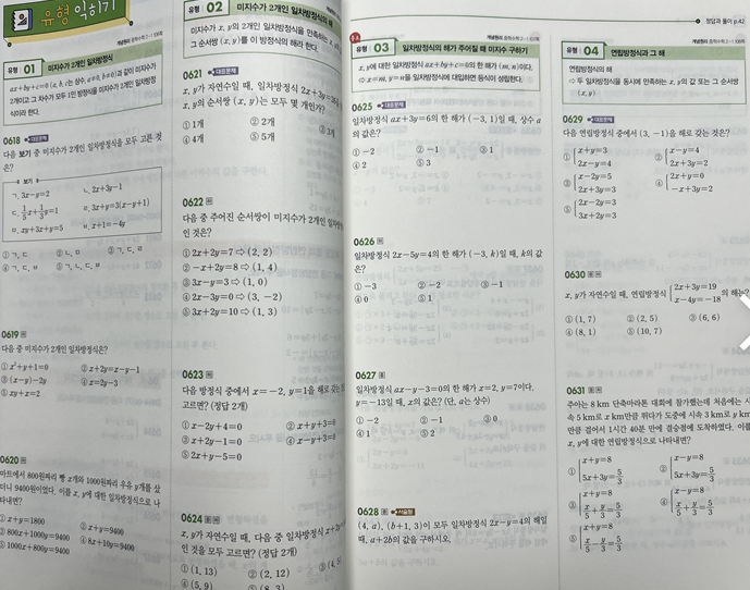 유형별로 하나의 유형에 대표문제를 포함해 세문제에서 다섯 문제까지 같은 유형의 문제가 반복돼요.