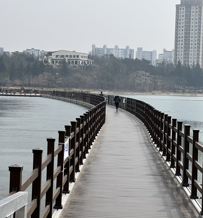 그런데 몇 해 전 영랑호수에 호수를 가로지르는 길이 생겼어요. 반대하는 시위도 곳곳에서 많았었는데 결국은 생기더라고요. 가로질러 호수를 건널 수 있어서 이용하시는 분들은 편리함과 즐길거리가 하나 더 생긴 샘이죠.