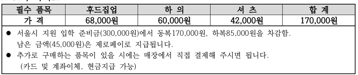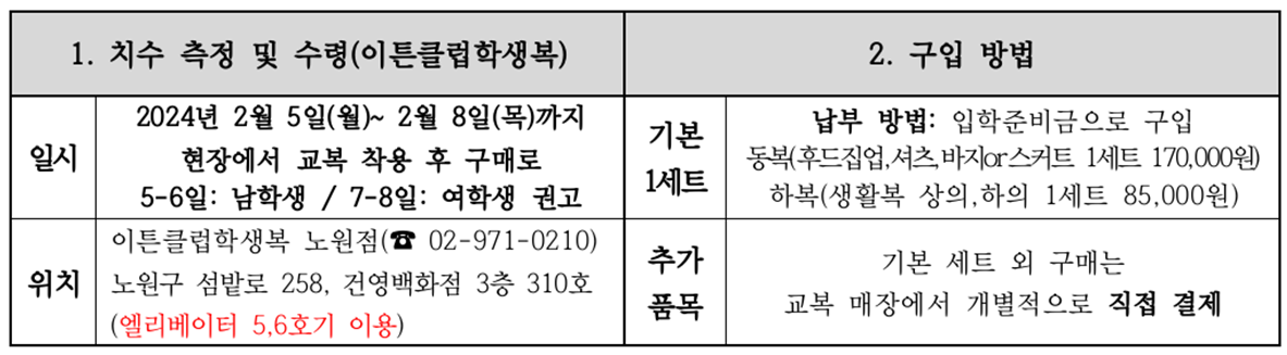 교복을 제때에 구입하셔야 아이들 입학하자마자 교복 입은 증명사진을 찍어 제출할 수 있으니 날짜 꼭 확인하세요~!