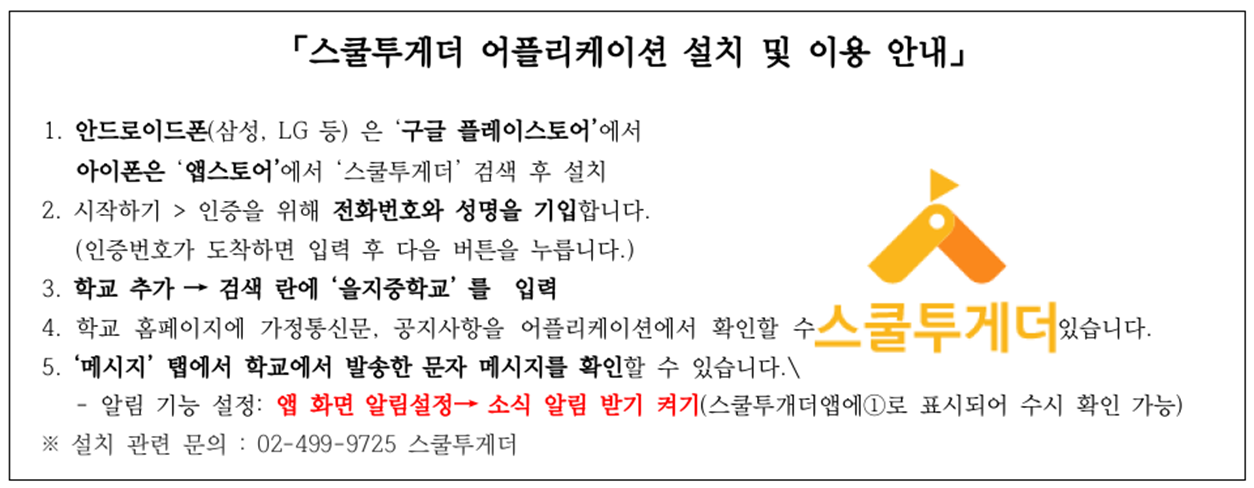 노원구 중계동의 을지중학교는 스쿨투게더를 사용하니 스쿨투게더 사용방법을 잘 아셔야겠어요.
