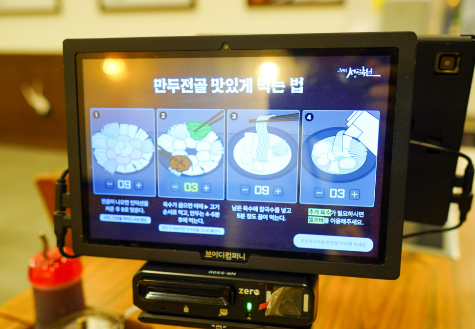 만두전골을 드시고 나면 칼국수를 추가해서 먹기도 하는데 자리에서 주문하면 로봇이 자리로 바로 가져다주니 기다릴 필요도 없이 회전이 빨랐어요.