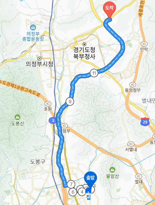 중계동 은행사거리부터 가는 길은 대강 이렇네요. 18km밖에 안되니 생각보다 가까워요. 30분 정도 걸리니까요.