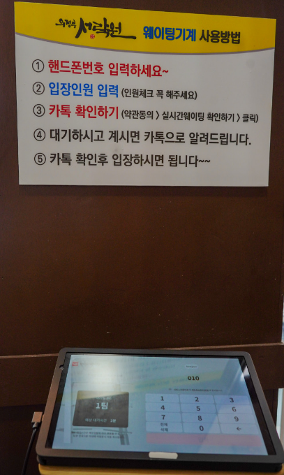 찾는 사람이 많은가 봐요. 그래서 웨이팅기계도 있어서 기다리면 카톡이 와요. 그리고 안쪽으로 편하게 기다리는 자리도 마련되어 있어요. 아주 좋요.^^ 대기석에는 커피머신도 있어서 따뜻한 커피 드시면서 기다리시면 돼요.