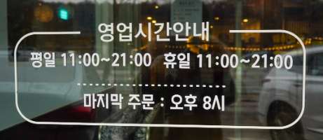 영업시간은 평일과 휴일 모두  11시부터 저녁 9시까지네요. 마지막 주문은 저녁 8시라고 하니 참고하세요.