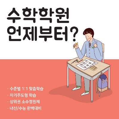 아이들 수학공부는 어떻게 하고 있나요? 학군지인 대치동, 목동, 중계동에서 수학학원은 다들 필수로 다닌다고들 하죠. 일단 수학공부를 시작하고 꾸준히 학습하게 하려는 것이겠죠. 학원을 다닌다고 수학공부를 하고, 안 다닌다고 해서 수학공부를 안 하고 있는 건 아닐 텐데 말이죠. 수학학원을 안 다녀도 집에서 그만큼의 학습량을 채울 수만 있다면 괜찮겠지만 또 그렇지는 못하잖아요. 한번 다니면 그만두기 애매한 수학학원. 언제부터 다니는 게 좋을까요?