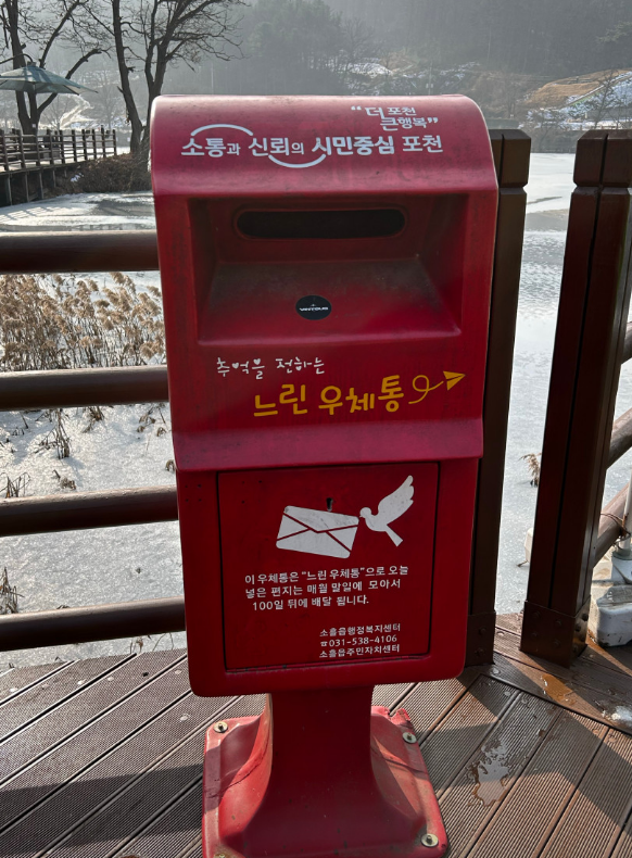 걷다 보면 둘레길 마지막쯤에 느린 우체통이 하나 있어요.