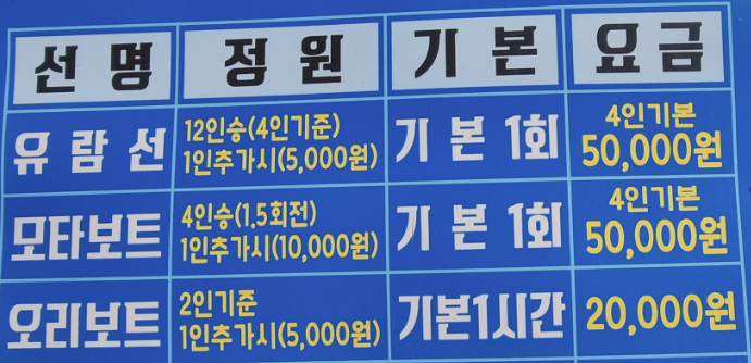 고모리 수상레저 요금도 알려드려요. 참고하세요.