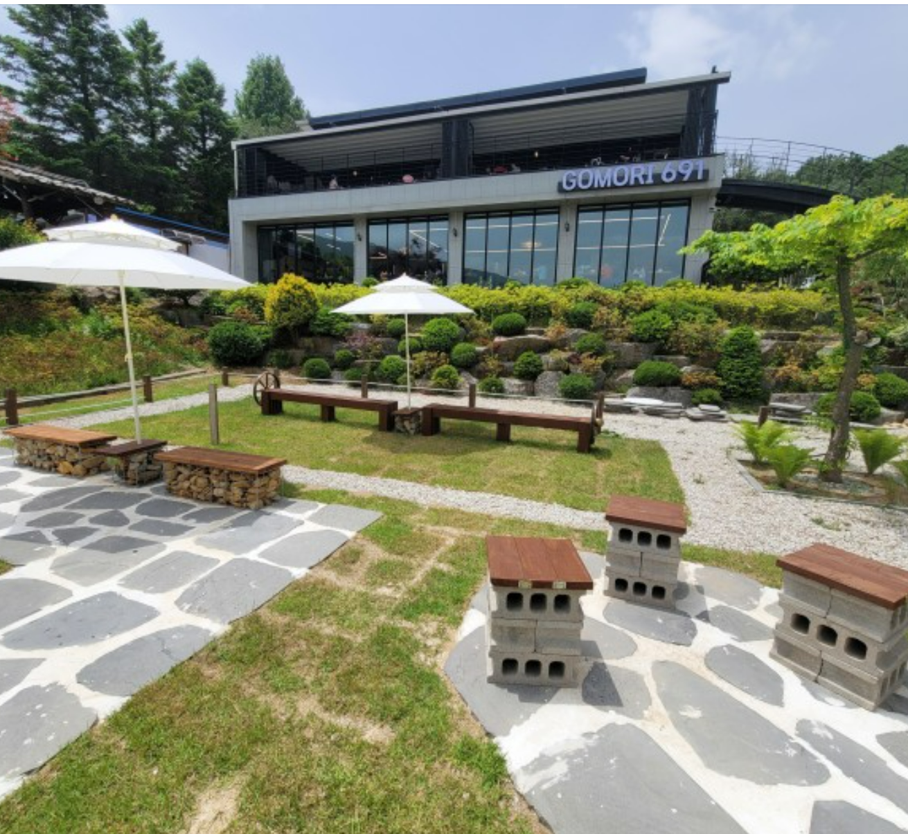 첫 번째는 누룽지파스타가 유명하고 커피맛이 일품인 고모리 691이에요. 야외테라스가 엄청 넓어서 바람 솔솔 맞으며 커피 한잔 하는 기분이 끝내줍니다. 애완견 많이 데리고 다니시잖아요 요즘~ 강아지들도 많이 보이더라고요.