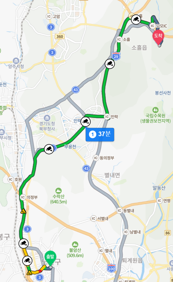 중계동 은행사거리에서 고모리까지는 한 시간이 채 걸리지 않아요. 보통은 40분 정도면 갈 수 있더라고요.