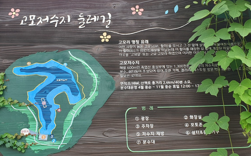 고모리 저수지라고 늘 불러왔는데 지금 보니 정확한 명칭이 포천고모호수네요. 둘레길이 잘 되어 있어요. 오르막 내리막이 거의 없어서 걷기에도 참 좋더라고요.