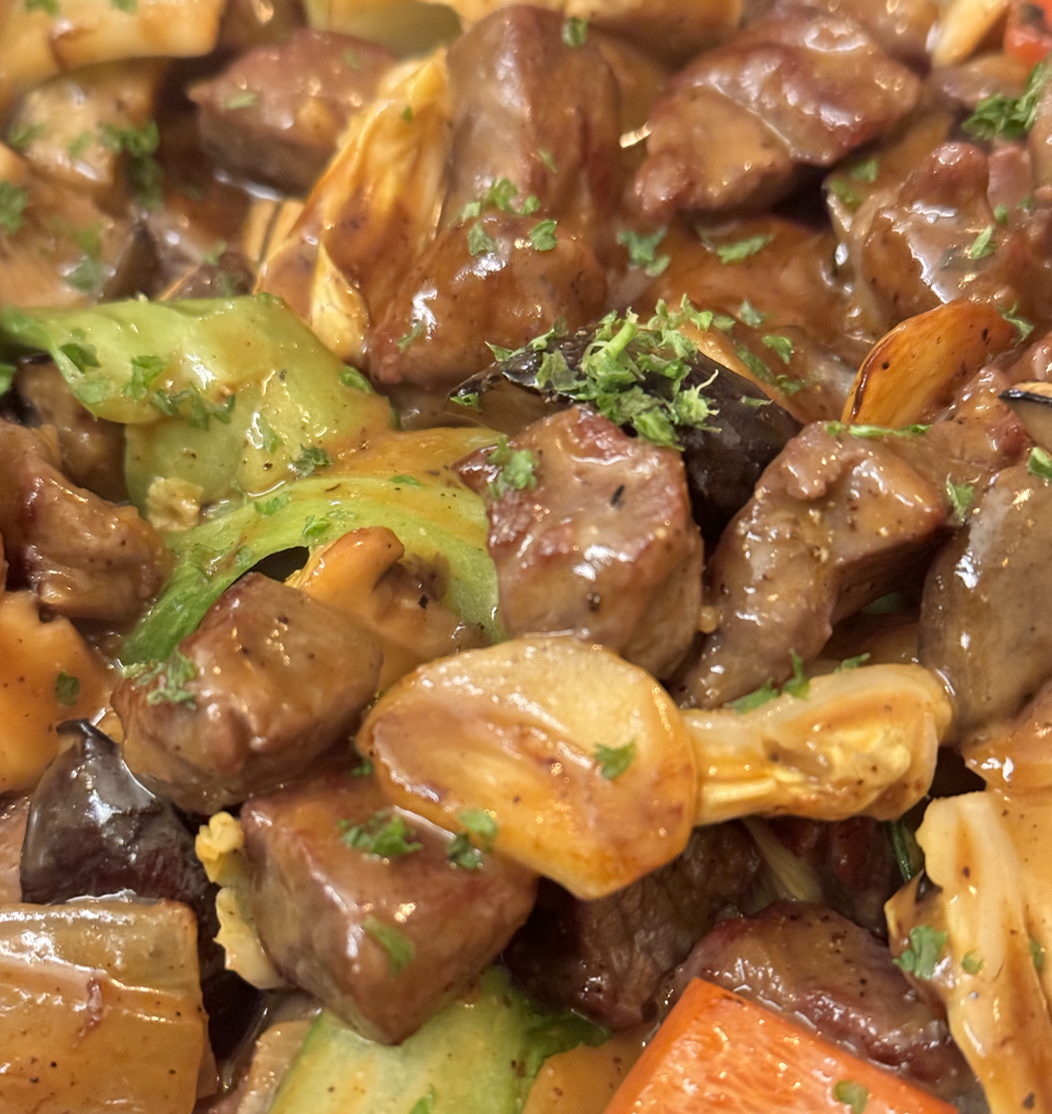 커다란 도자기 그릇에 국물까지 가득해 와인 한잔이 떠오르는 맛입니다.