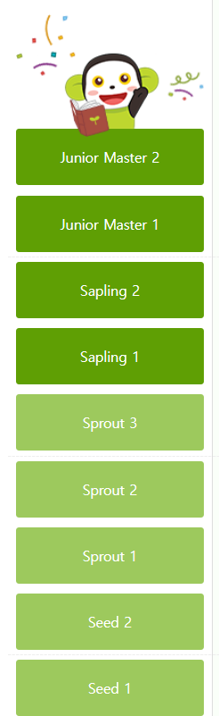 Sprout2 부터 Junior Master2 까지 드랍없이 잘 따라가면 5학년2학기에 모든 과정이 마쳐져요.